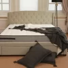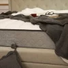 – Vải bọc dệt kim Knit cao cấp: Mặt đệm được bao phủ bởi lớp vải dệt kim Knit 3 lớp, với cấu trúc mềm mại và đàn hồi tốt. Cấu trúc này gồm: lớp vải dệt kim phía trên, lớp giữa là sợi bông và lớp lót ổn định sợi bên dưới, tạo nên cảm giác thoáng mát vào mùa hè và giữ nhiệt ấm áp vào mùa đông. Với khả năng kháng khuẩn vượt trội, vải Knit không chỉ mang lại cảm giác thoải mái mà còn bảo vệ sức khỏe người dùng, đặc biệt phù hợp với những ai có làn da nhạy cảm.